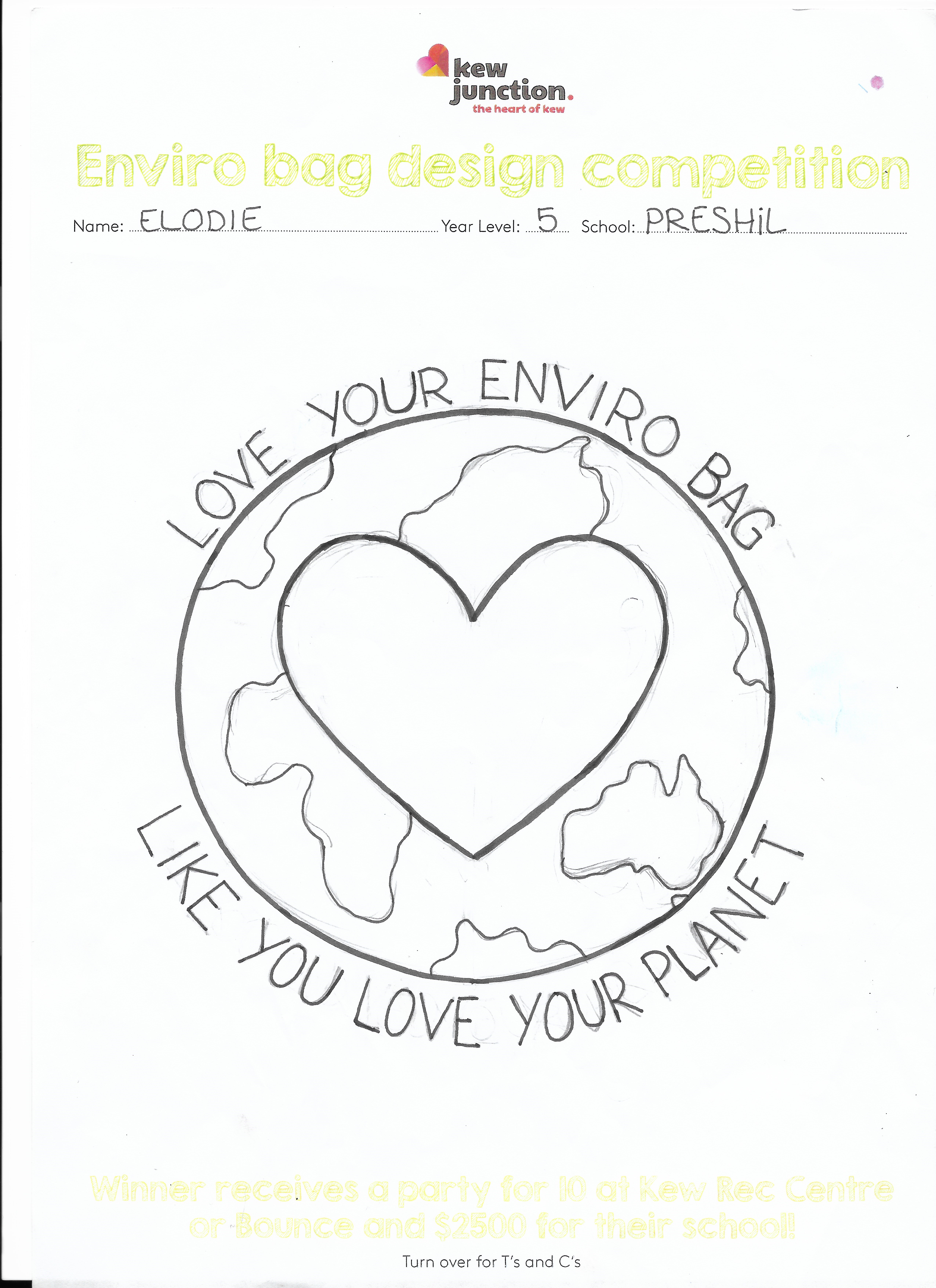 Judged by Federal MP Josh Frydenberg, Preshil student Elodie Rose’s design will feature on all reusable bags distributed to Kew Junction traders.