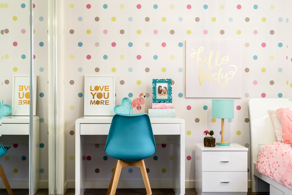 Here, Rosaria shares the latest in kids’ bedroom trends from walls to windows to art.