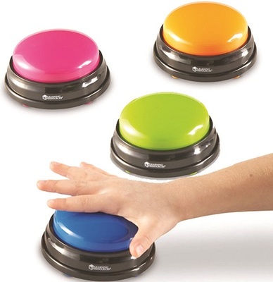 Answer Buzzers are an excellent social interaction game with 4 unique sounds: horn honk, boxing bell, door bell and boing! It’s great for developing auditory differentiation and also for children who may struggle with speaking.