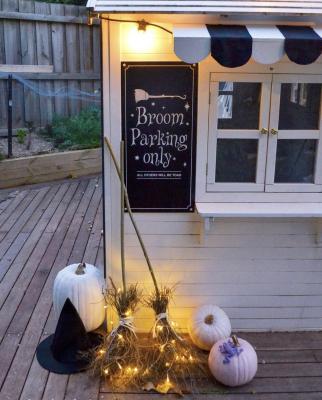 “We made whimsical witches broomsticks from dried up twigs in our backyard, painted a sign and turned the veggie garden into a Cinderella pumpkin patch.