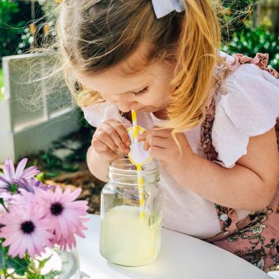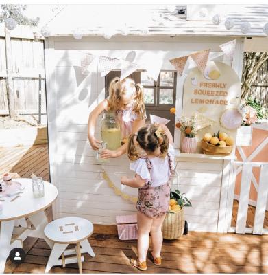 “Since we couldn’t visit cafes anymore, I thought why not bring the cafe to us?“Lemons were in season which could only mean one thing … a lemonade stand! So that was the first transformation the cubby had. “I found a little online shop Olive Eve and Co that had cute lemonade printouts. “Then we just put the rest together by setting up their table and chairs outside, they had a go at squeezing lemons, and collected whatever we could find in the home from straws, to the drink dispenser, to making a menu using one of our Moodyboards.”
