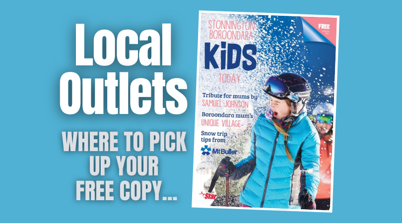 The following outlets will have FREE copies of the latest Edition of Stonnington Boroondara Kids Today Magazine – (While stocks last)