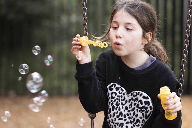A bubble wand harnesses the power of deep breathing, and a squishy tool taps into deep pressure, like a stress ball for kids.